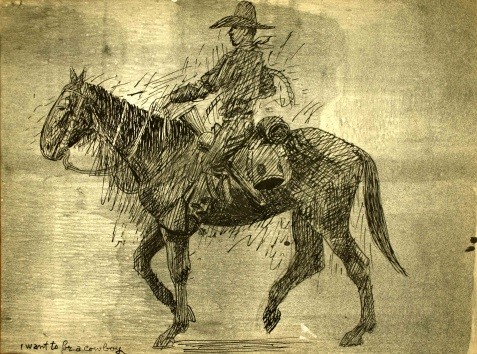 Eduard Ulreich, I Want to be a Cowboy, 1905, pen and ink, 12 ½ x 9 ½ in.