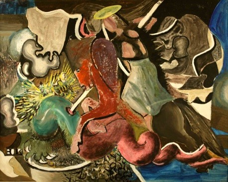Jackson Pollock, Guardians of the Secret, 1943, oil on canvas, 48 ½ x 75 ½ in., San Francisco Museum of Art
