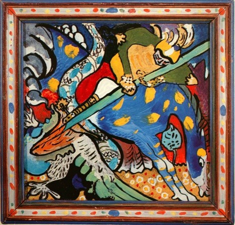 Wassily Kandinsky, St. Georg I, 1911, glass painting, 7 ½ x 7 ½ in. Munich, Stadtische Galerie im Lenbachhaus