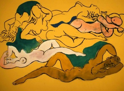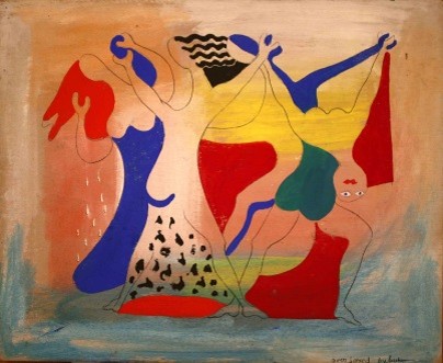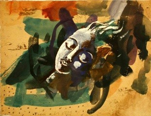 Beyond such broad characterizations of Ulreich’s work, his artistic career can be classified more discretely. Although lagging the original movement by 30 years, philosophically, Ulreich seems to fit best with the Symbolists. For Symbolists, artistic expression was not a means of simply reproducing the natural, but rather a means of expressing one’s innermost beliefs and feelings through the use of symbolic color, design, and image. Ulreich’s painting, Peace Be Still has a strong resemblance to Symbolist Odilon Redon’s Orpheus. Stylistically, Ulreich’s work is elusive. There are elements of influence from the Florentine masters of the 1400s, there are the color and decorative elements of the Fauves, the decomposition of forms in the Cubist style, and the absurdities of the Surrealists. Ulreich’s watercolor, Overjoyed, shares the same contorted bodies as Picasso’s Large Nude in a Red Armchair. Similar to other modernists such as Picasso, Kandinsky and Chagall, Ulreich experimented in a variety of styles placing a high personal value on inventiveness and imagination in his work.