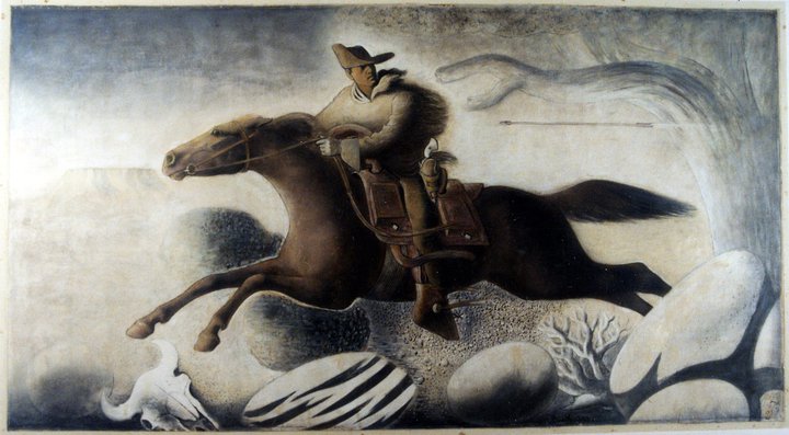 Eduard Ulreich, The Pony Express, mural for Columbia, Mo Post Office, 1937