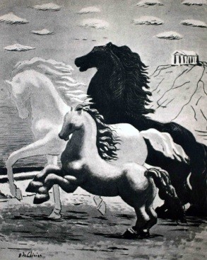 Giorgio de Chirico, Cavalli sulla spiaggia, olio su tela, 23 ½ x 36 in. Galleria La Medusa, Roma