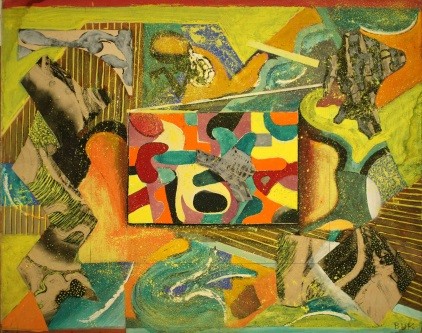 There are even traces in some of Ulreich’s painting of the splattering technique of these action painters. Ulreich experimented with geometric abstraction that referenced the work of Piet Mondrian. By the early 1960s, he was experimenting with collage in the style of Robert Rauchenberg. However, in the final years of his life, Ulreich’s abstractions became darker, less linear, and possessed less energy. The overall tone of his work in the last few years of his life became more somber and reserved, standing in stark contrast to the variety and playful use of color present in earlier paintings in his career.