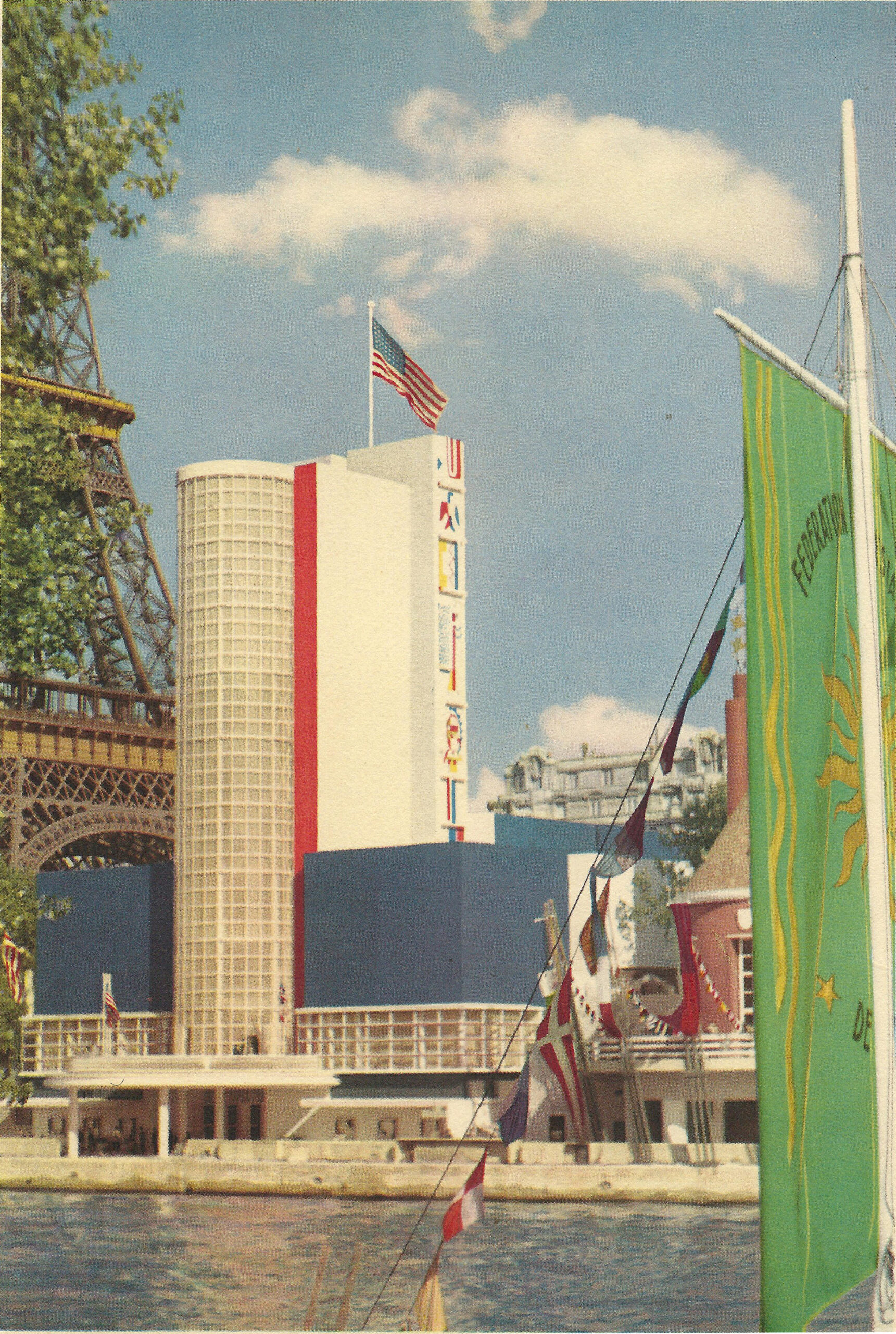 American Indian Symbols at the U.S. Pavilion, Paris Exposition, Paris, France. Oil on exterior wall, 12 panels, each approximately 6 x 8 ft. Temporary building, murals destroyed after exposition.